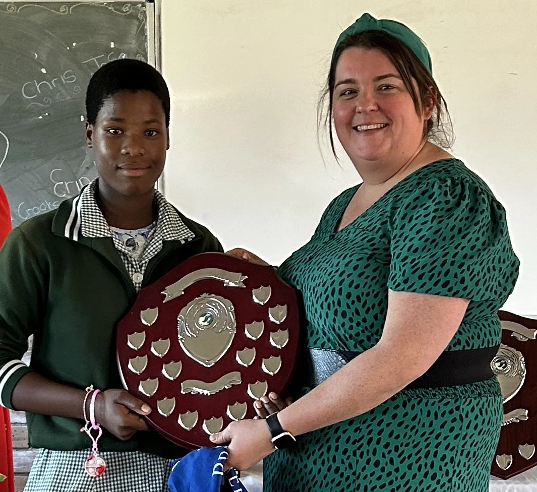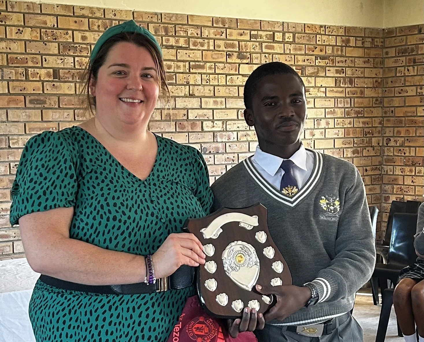 Three special awards were presented to students at Thembimfundo Special School. These awards were presented at the school in memory of former St. Mary’s teacher, Matt Harvey, who loved his time volunteering in South Africa. Matt made a real impression on the staff and students at Thembimfundo, his annual awards are perfect as they remind the Thembimfundo community and the Bambisanani team of the joy and fun we all shared as a result of Mr Harvey’s leadership. Mrs Catherine Chattoe, Bambisanani Partnership coordinator at St. Mary’s presented the awards.