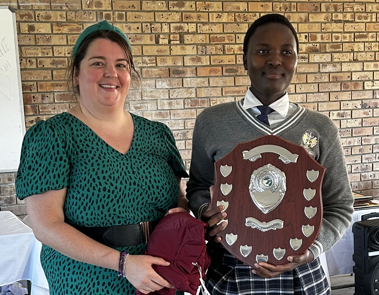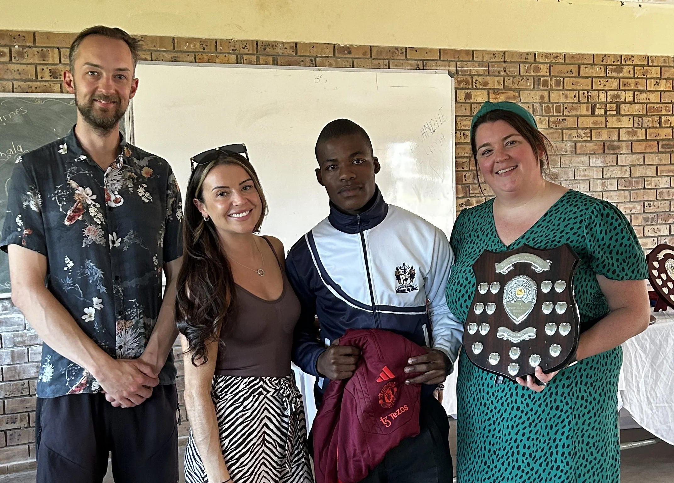 At Mnyakanya High School 8 Awards were presented to students by the Bambisanani team, Miss Charlotte Wood and Mr Patrick Rogozinski from St. Mary’s School, Menston and Matt and Chloe Crooks, Trustees of the Jordan Sinnott Foundation during this summer’s visit to South Africa by student volunteers: